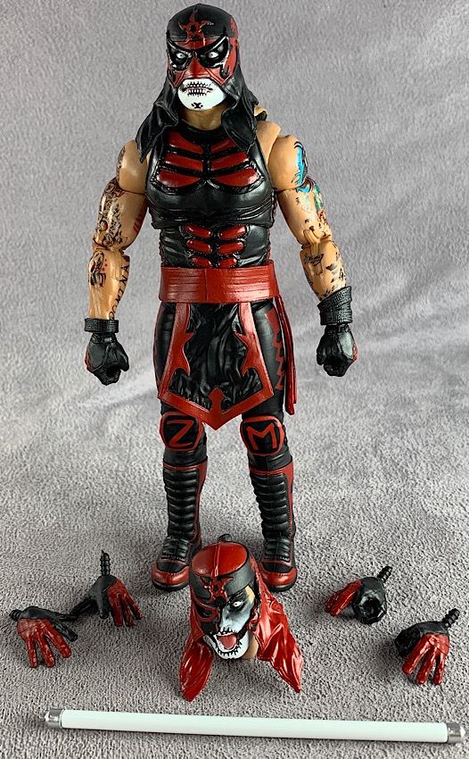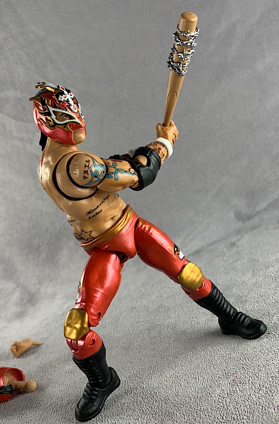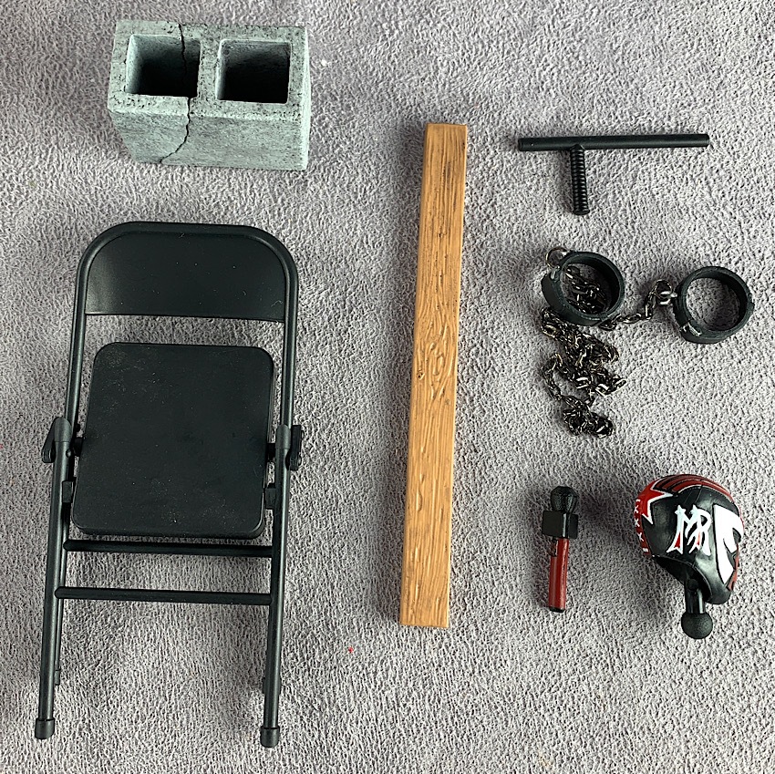 But this initial assortment isn’t just about the figures and characters. There are two accessory sets included with this assortment as well, which are just insanely fun. A folding chair, the customary breakaway table, baseball bat with removable barbed wire, wooden kendo sticks, flexible strands of barbed wire, a microphone, a breakable cinder block– and a couple of Masked Republic masked heads. So many options and so much fun.