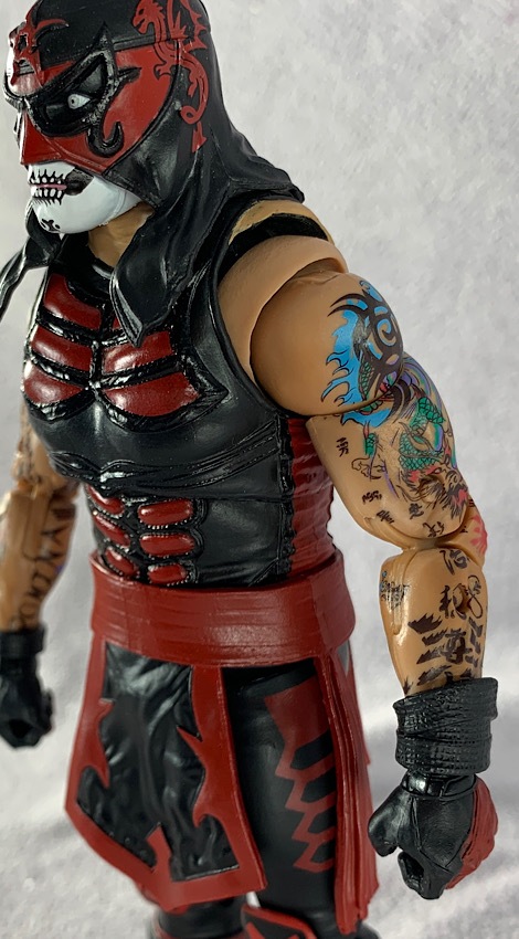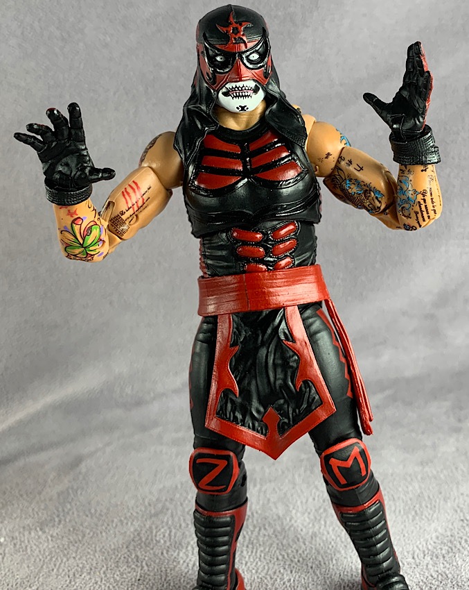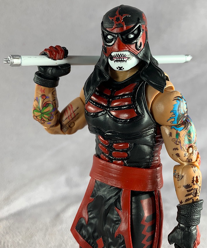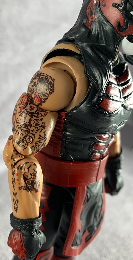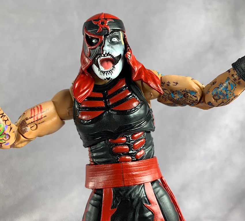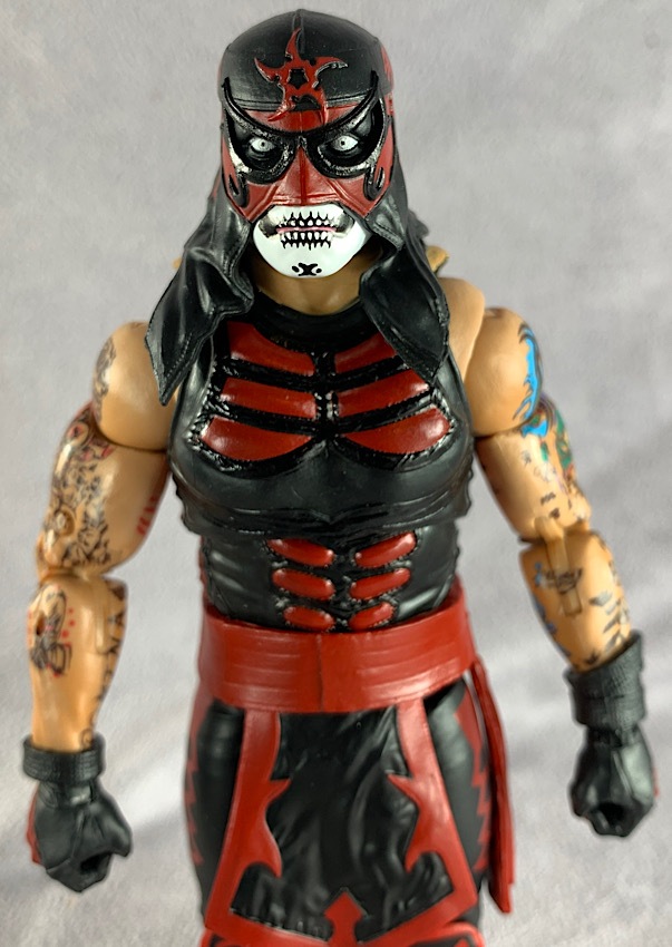 Legends of Lucha Libre is no different. One just has to look at the intricate tattoo deco on both of these figures to know exactly what is possible at a larger scale. Though, to be honest, I’ve spent a very long time staring at the tattoo deco on this figure and it STILL doesn’t seem possible, even at a 6″ size. The paint deco on these figures is truly spectacular. The tattoos are so nicely painted and applied, working seamlessly throughout the joints and even included on the spare hands that come with Ray Fenix.